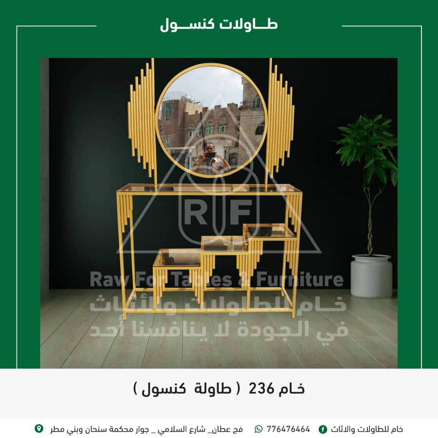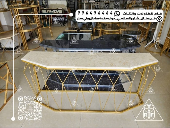 محل خام للطاولات والأثاث هو وجهتك المثالية في صنعاء، اليمن، لكل من يبحث عن قطع أثاث فريدة وعصرية تجمع بين الجودة العالية والتصميم الأنيق. نحن متخصصون في تقديم تشكيلة واسعة من الطاولات والأثاث المصنوع من أجود أنواع الاستيل والحديد، مع خيارات متعددة للأسطح من الزجاج، الرخام، وبديل الرخام لتناسب جميع الأذواق والديكورات. ماذا نقدم؟ نفتخر بتقديم اكبر واحدث مجموعة متنوعة من الطاولات المعدنية والتي تلبي كافة احتياجات منزلك.